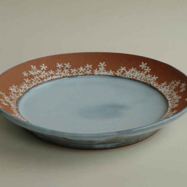 Prato com aba e desenho de flor